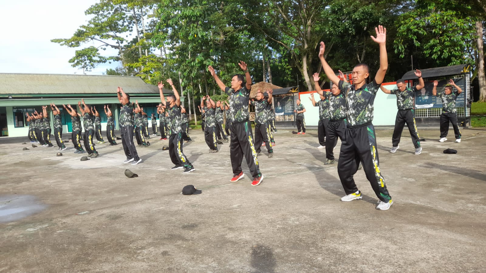 BARABAI,Tikalak.com–Dalam rangka meningkatkan kebugaran dan kesehatan badan, anggota Kodim 1002/Hulu Sungai Tengah melakukan olahraga secara rutin.