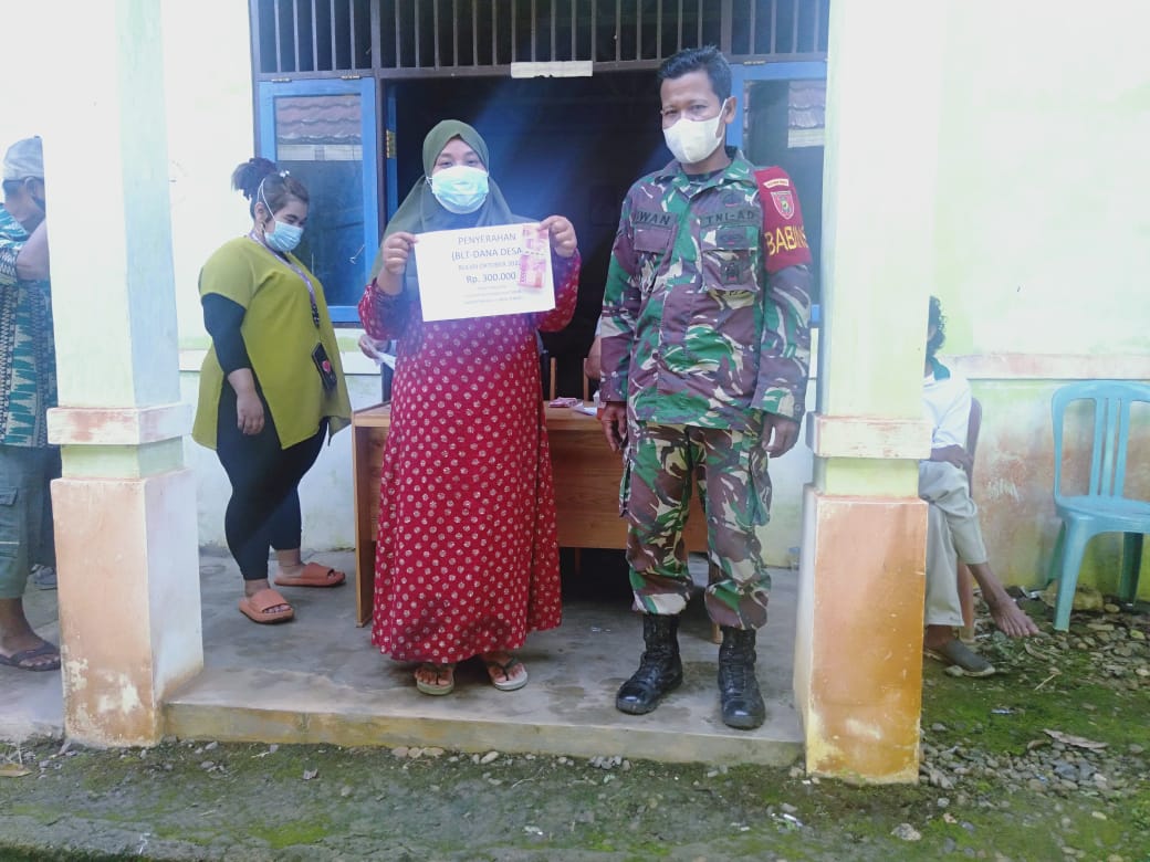 BARABAI,Tikalak.com–Babinsa Koramil 1002-01/Bas Serda Iwan melaksanakan kegiatan pendampingan penyaluran Bantuan Langsung Tunai Dana Desa (BLT DD) kepada keluarga miskin yang terdampak pandemi Covid -19 di desa Tandilang Kecamatan Batang Alai Timur Kabupaten Hulu Sungai Tengah.Sabtu (22/10/2022).