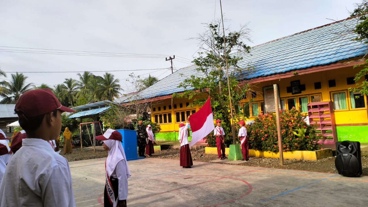 Salah satunya yang dilakukan oleh Babinsa Koramil 1002-08/Labuan Amas Utara Serda Agus Arahman, menanamkan rasa cinta tanah air sejak dini kepada siswa SDN 2 Samhurang dalam Upacara Pengibaran Bendera Merah Putih. Senin (26/09).