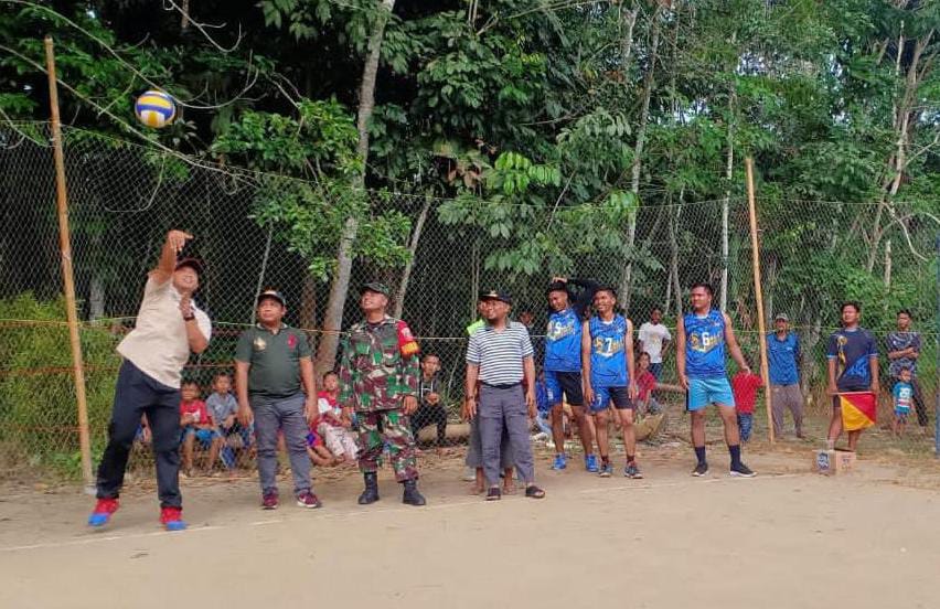Selanjutnya Dandim 1002/HST Letkol Kav Gagang Prawardhana.SIP.M,Han didampingi oleh Yazid Fahmi, Camat Pandawan As’ad,ST, Ketua Panitia Supiani,SE., Plh.Danramil 1002-05/Pandawan Peltu Henri Murpianto melakukan servis pertama tanda turnamen bola volly resmi dibuka.(Pendim1002).