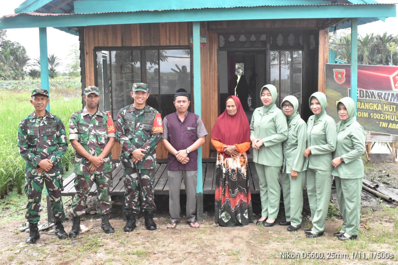 Dalam kesempatan peresmian rehab rumah veteran, Ketua Persit Kartika Chandra Kirana Cabang XXV Kodim 1002 Koorcab Rem 101 PD VI/Mulawarman Ny.Halida Gagang menyerahkan bantuan sembako kepada bu Raudah sebagai tali asih.(pendim1002).