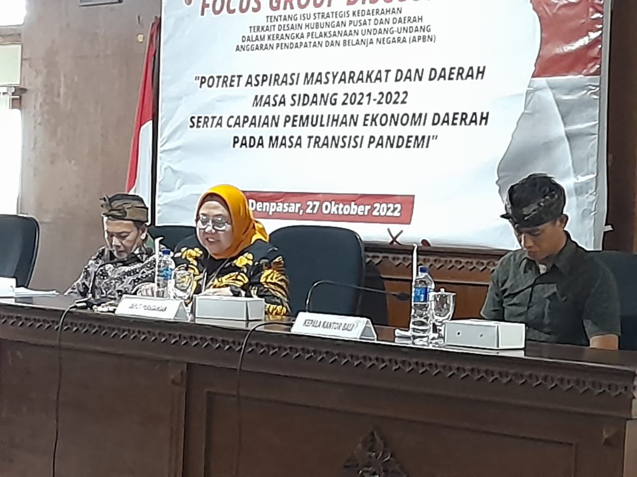 Tikalak.com–Sekretariat Jenderal DPD RI menggelar Focus Group Discussion terkait aspirasi masyarakat daerah selama Masa Sidang Tahun 2021, yang berasal dari tabulasi aspirasi masyarakat dan daerah yang diperoleh dari Anggota DPD RI selama masa reses, di Kantor DPD RI, Provinsi Bali, Denpasar (27/10-2022).