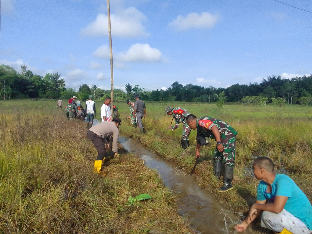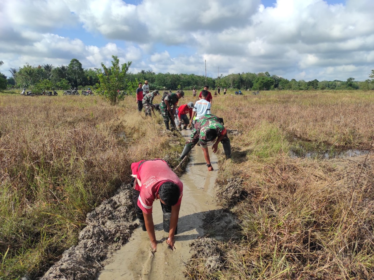 BARABAI,Tikalak.com–Anggota Koramil 1002-06/Barabai dipimpin langsung oleh Serma Didi Mashudi Bersama Bhabinkamtibmas dan warga masyarakt Desa Barabai RT. 003, 004 RW. 001 Kecamatan Barabai Kabupaten Hulu Sungai Tengah melaksanakan gotong royong pembersihan saluran air tersier sepanjang 500 meter. Jum’at (07/10).
