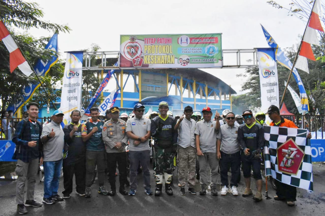 BARABAI,Tikalak.com–Ratusan Rider dari penjuru Kalimantan Selatan ikuti Jelajah Alam Barabai-6 Adventure dan Enduro yang digelar oleh Kodim 1002/Hulu Sungai Tengah (HST) bekerja sama dengan Bratic (Barabai Trail Comunity) Super Kebo dalam rangka memeriahkan HUT TNI ke-77 dengan start dari Stadion Murakata Mandingin Barabai, Sabtu (15/10).