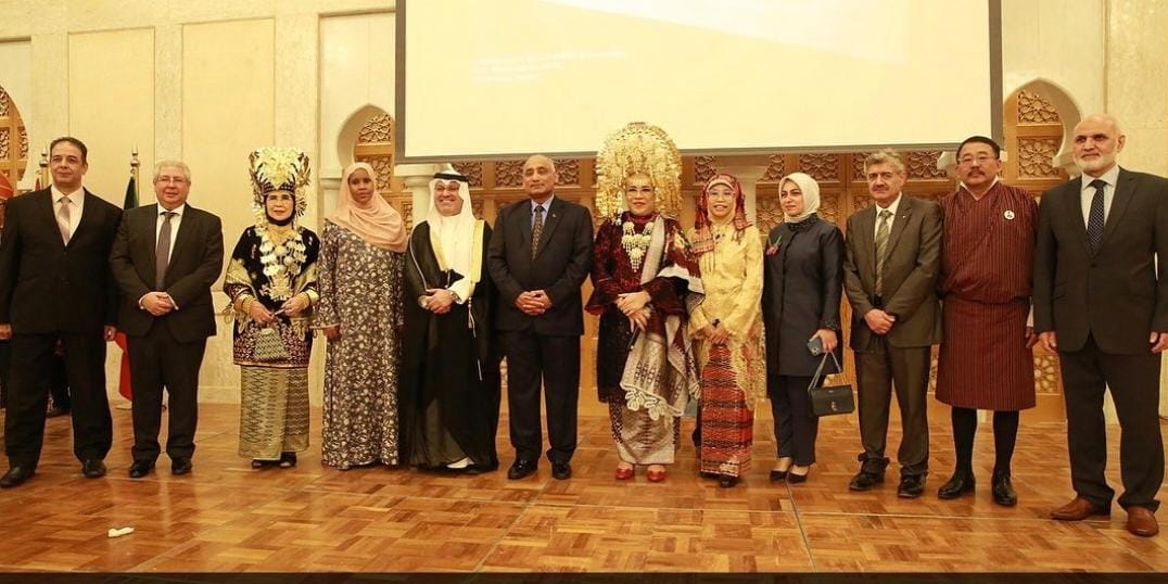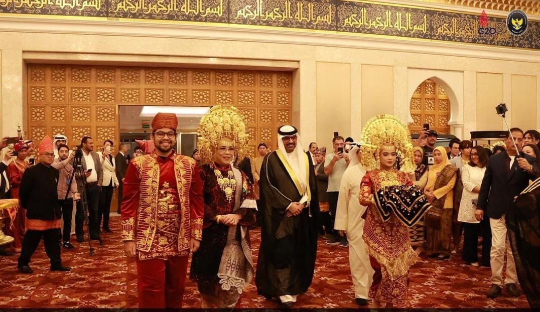 Menariknya lagi, Duta Besar Indonesia di Kuwait City, Lena Maryana memakai pakaian adat pernikahan adat minang lengkap dengan suntiangnya.