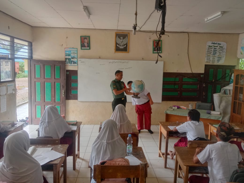 BARABAI,Tikalak.com–Dalam rangka menanamkan rasa cinta tanah air sejak dini , Bintara pembina desa (Babinsa) Koramil 1002-08/Labuan Amas Utara Setia Agus Arahman memberikan pemahaman wawasan kebangsaan kepada pelajar sekolah SD Muhamadiyah Desa Samhurang Kec.Lau Kab.Hulu Sungai Tengah Kalimantan Selatan. Kamis (27/10).