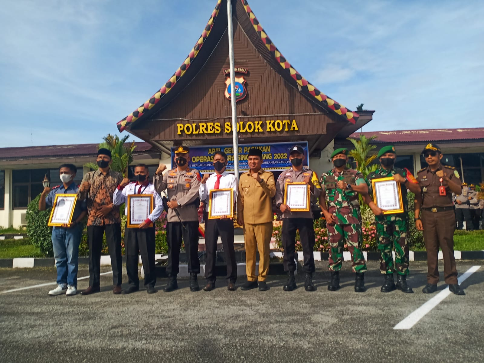 Turut hadir Wakil Walikota Solok Dr. Ramadhani Kirana Putra, SE, MM, Anggota DPRD Kota Solok Taufiq Nizam, Dandim 0309/Solok Letkol Arm Hendrik, perwakilan Kejari Solok, PJU Polres Solok Kota dan personel Polres Solok Kota.